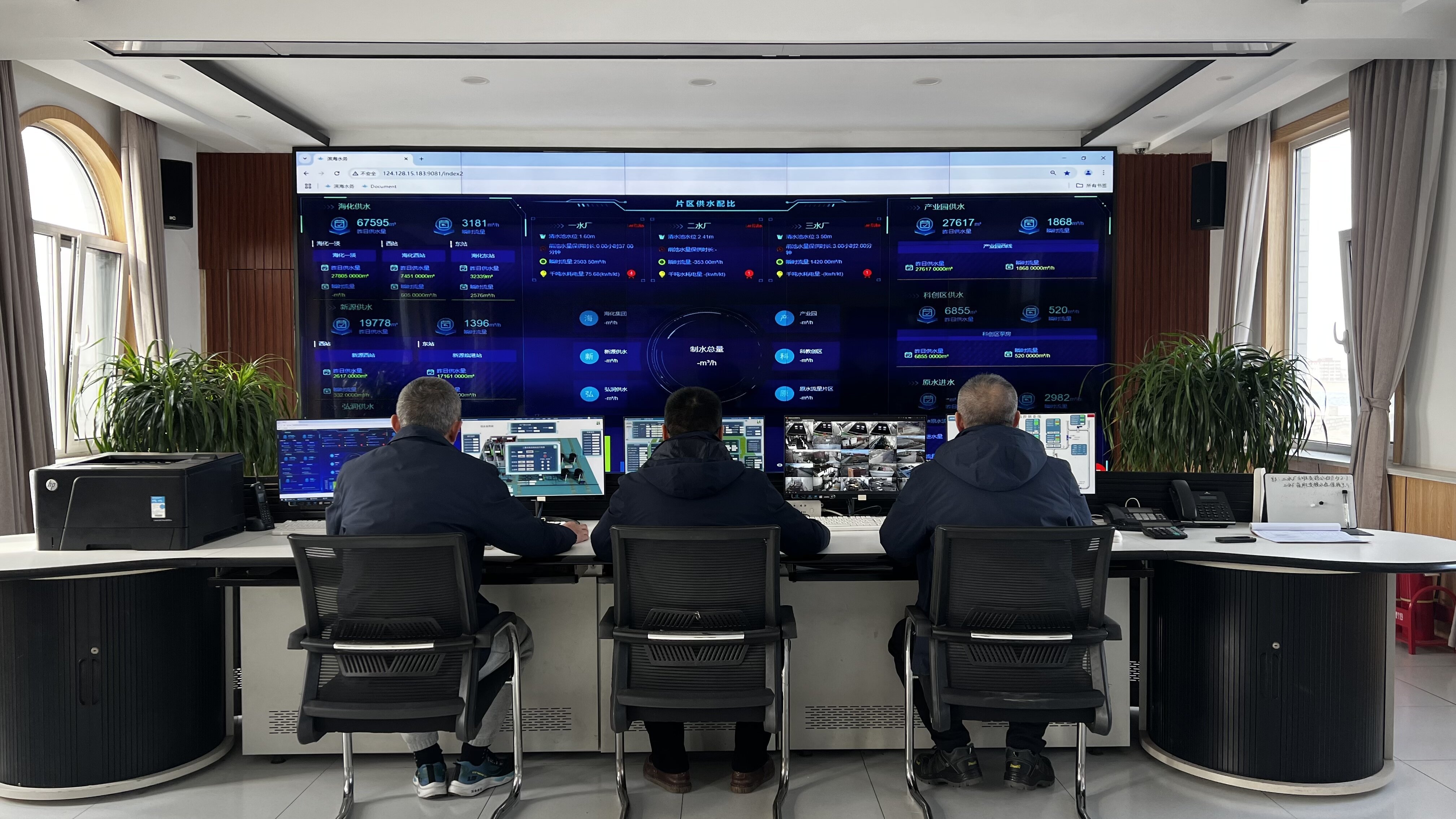 在濰坊水發(fā)供水集團智慧水務平臺監(jiān)控室,員工們正緊盯著屏幕上的數據,時刻關注著供水系統(tǒng)的運行狀態(tài)。員工們以飽滿的熱情和堅定的信心開啟新一年的工作,為城市的供水安全貢獻力量。
