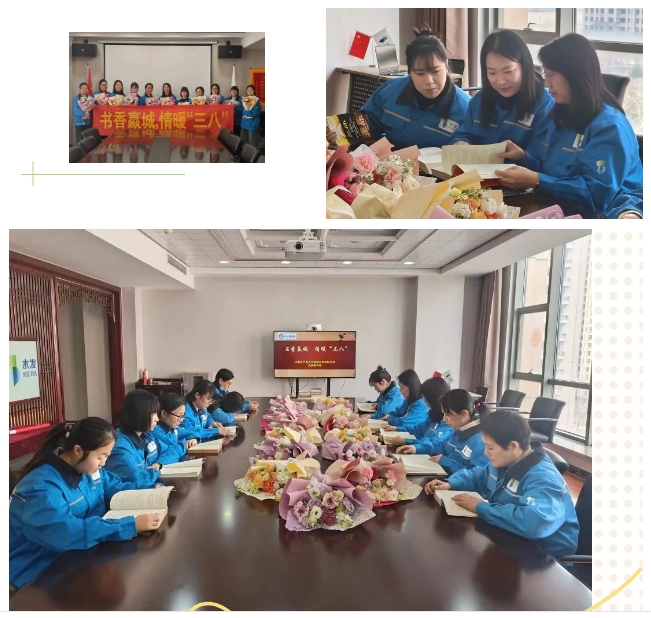 山東嬴城水務(wù)有限公司組織開(kāi)展“書(shū)香嬴城 情暖三八”婦女節(jié)閱讀分享會(huì)。會(huì)上花香彌漫,沁人心脾,廣大女職工紛紛挑選自己喜愛(ài)的書(shū)籍,享受閱讀樂(lè)趣,品讀書(shū)中墨香,并結(jié)合生活工作實(shí)際進(jìn)行好書(shū)分享,暢談收獲和體會(huì)。