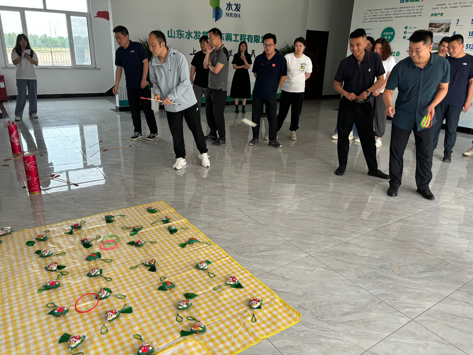 本次端午節(jié)活動(dòng)分為游戲互動(dòng)和包粽子環(huán)節(jié)。活動(dòng)現(xiàn)場(chǎng)歡聲笑語(yǔ)不絕于耳,投壺比賽激起了參與者們的熱情,每人有八次投壺機(jī)會(huì),大家站在規(guī)定的投擲線后,專注投擲,場(chǎng)面熱鬧有趣。緊接著是套粽子比賽,大家摩拳擦掌,爭(zhēng)取每一次套中粽子香包的機(jī)會(huì),盡情釋放節(jié)日的喜悅與活力。