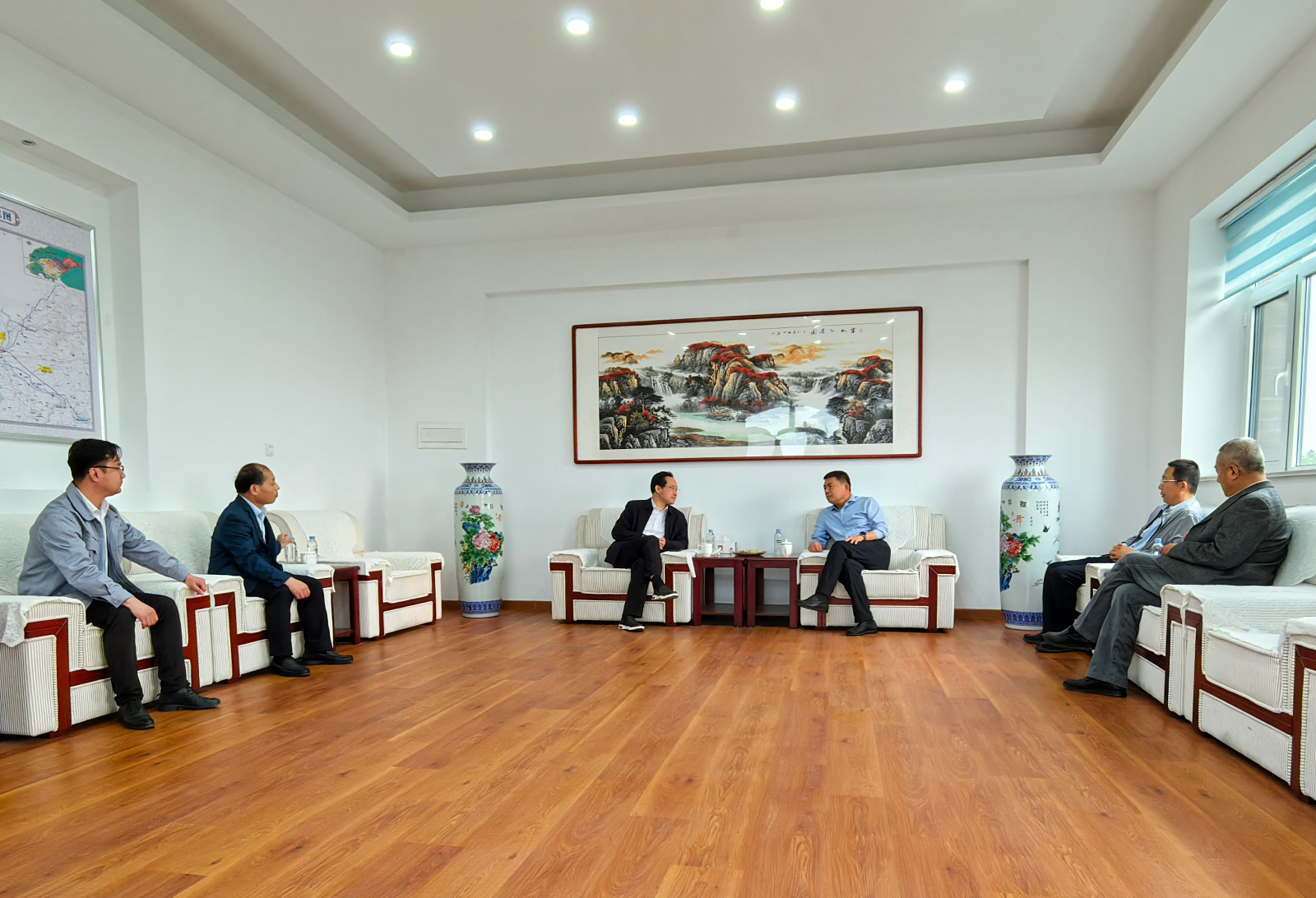 4月22日,濰坊市濰城區(qū)委常委、副區(qū)長石凌峰一行到訪濰坊水發(fā)供水集團(tuán)座談交流,水發(fā)水控集團(tuán)濰坊區(qū)域總經(jīng)理、供水集團(tuán)董事長張勇陪同。